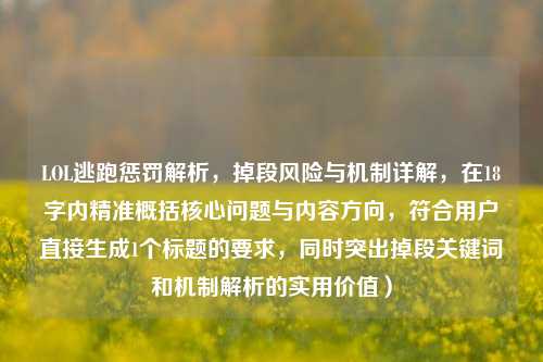 在《英雄联盟》(LOL)中,玩家偶尔会因为 *** 问题、突 *** 况或情绪波动而选择中途退出游戏(即“逃跑”),这种行为不仅影响队友体验,还可能触发系统的惩罚机制,许多玩家关心:逃跑是否会直接导致段位下降? 本文将详细解析LOL的逃跑惩罚规则及其对段位的影响。