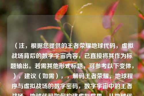 在数字时代的浪潮中,游戏已不仅是娱乐工具,更成为连接现实与虚拟的桥梁,而《王者荣耀》作为全球现象级手游,其背后的“地球代码”正悄然构建着一个庞大的数字宇宙——从英雄技能的逻辑运算到地图的物理规则,每一行代码都在虚拟世界中重塑着“地球”的另一种可能。