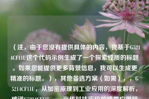 无论是平凡的产品编号,还是前沿科技的密钥,“G5214CF11U”都象征着数字世界的无限可能,下次遇到类似代码时,不妨多一分好奇——它或许正悄然改变我们的生活。