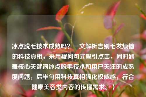 随着人们对美容需求的不断提升,脱毛技术也在不断革新,传统的脱毛 *** 如刮毛、蜜蜡脱毛等虽然能暂时去除毛发,但效果短暂且容易引发皮肤敏感,而冰点脱毛技术的出现,以其高效、安全、持久的特点,成为现代脱毛领域的明星选择,本文将详细介绍冰点脱毛的原理、优势、适用人群及注意事项,帮助您全面了解这一技术。